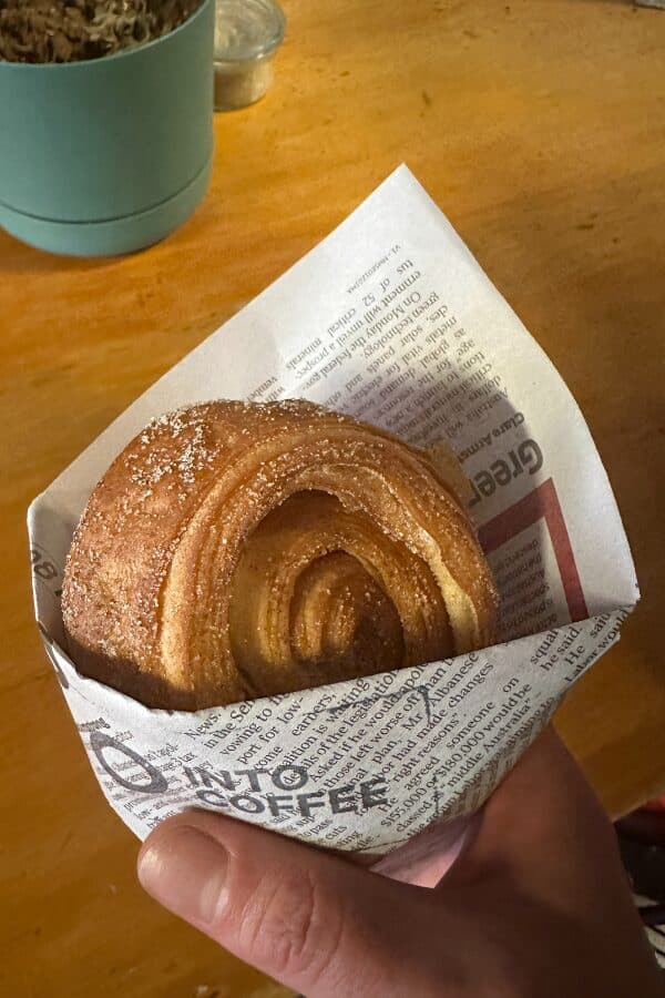 At Into Coffee there’s a mug wall, and if it’s your first time and you didn’t bring a reusable mug with you, you get a ceramic mug to take your coffee away in. The mug wall has mugs on it that have been sourced from the op shop. You can grab one and use it, and keep it if you really want but most people bring them back and keep using them as a take away option. You can use this option even if it’s not your first time as well.